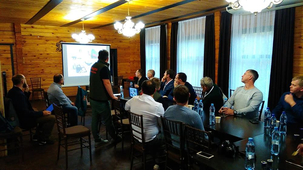 После экскурсии руководитель направления прицепы «Экспедиция» Тимофей Жигалов выступил с докладом перед участниками конференции. Были подведены итоги работы за период 2017-2018г, сформулирована стратегия развития на следующий год. Дилеры смогли озвучить конструкторскому бюро свои предложения по модернизации прицепов и отдельных узлов. По итогам обсуждения составлен план мероприятий, направленных на улучшение качества продукции и удовлетворение потребностей покупателей.