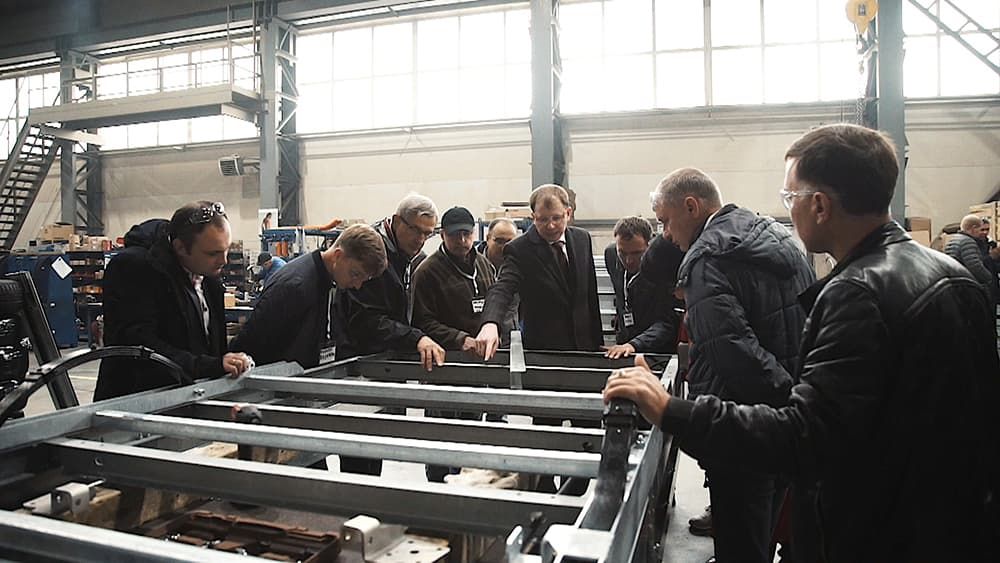 В Краснокамск прибыли участники более чем из 20 регионов России, а также из Беларуси и Казахстана. Директор предприятия Дмитрий Теплов провел экскурсию по заводу, рассказал о всех этапах производства прицепа от резки металла до сборки готовой продукции.