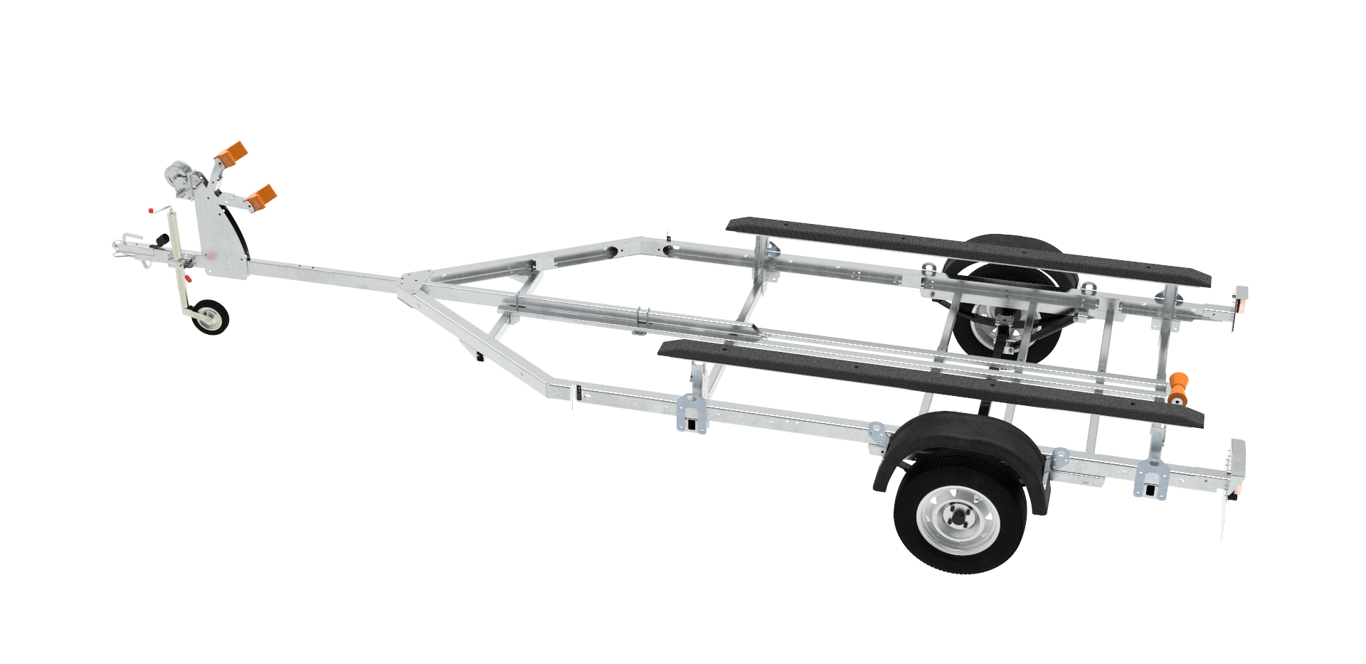 • Тип подвески: рессорная с гидравлическими телескопическими амортизаторами. Изменяемое положение подвески (шасси) прицепа позволяет правильно распределить центр тяжести судна.